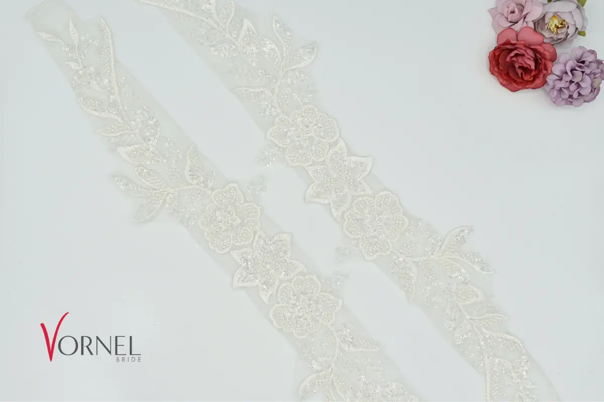 ✔ Besonderheiten: markante Blütenmotive, romantische Optik, ideal für Brautkleider mit detailreicher Gestaltung