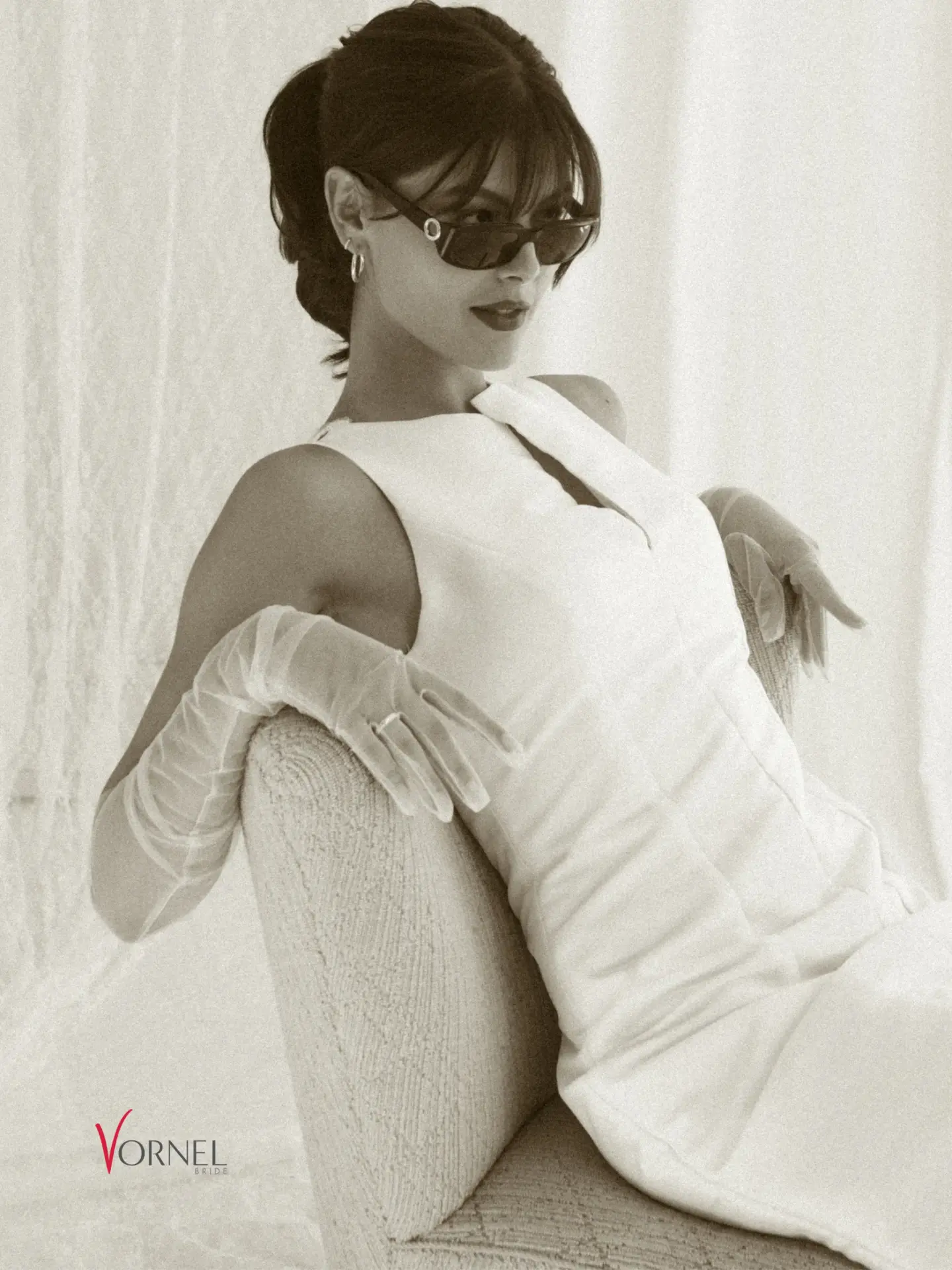 So wird aus dem kurzen, modernen Kleid im Handumdrehen ein eleganter Auftritt für die Trauung oder die Feier.