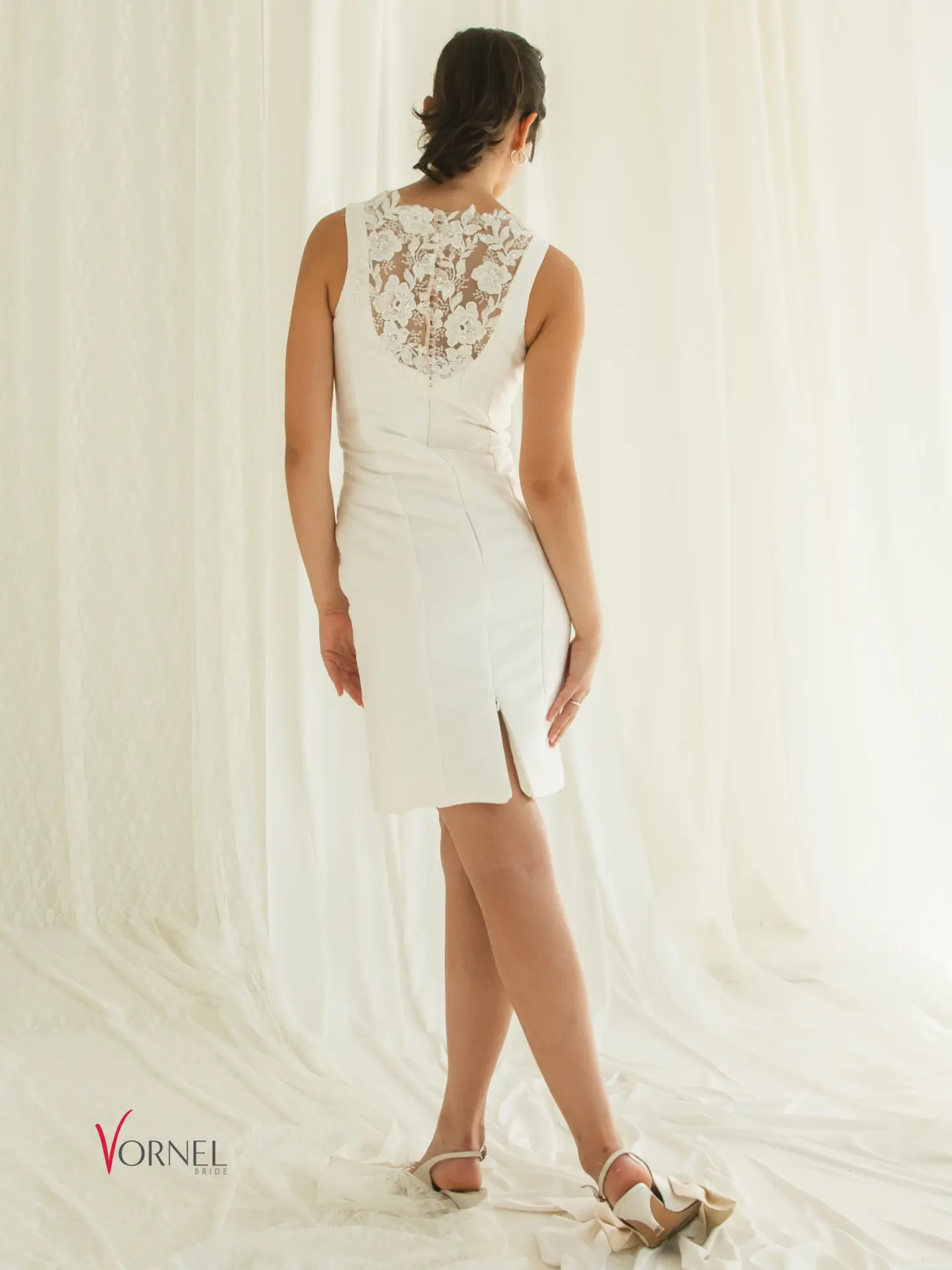 - ✔ Stil: Kurzes Etuikleid mit Spitzenrücken & optionalem Volant