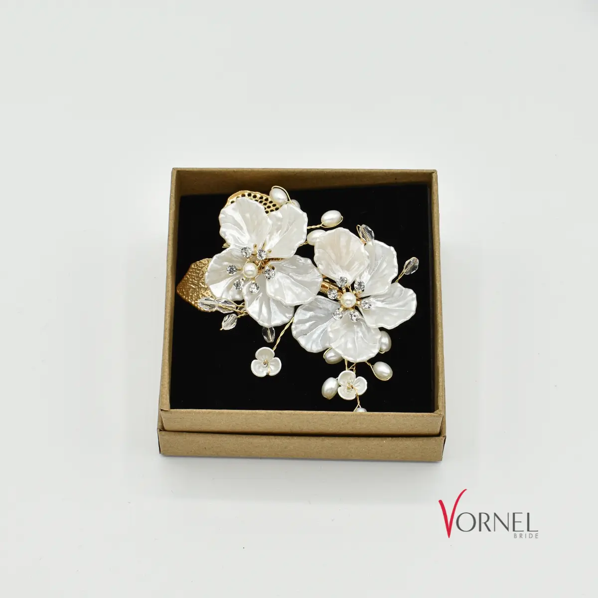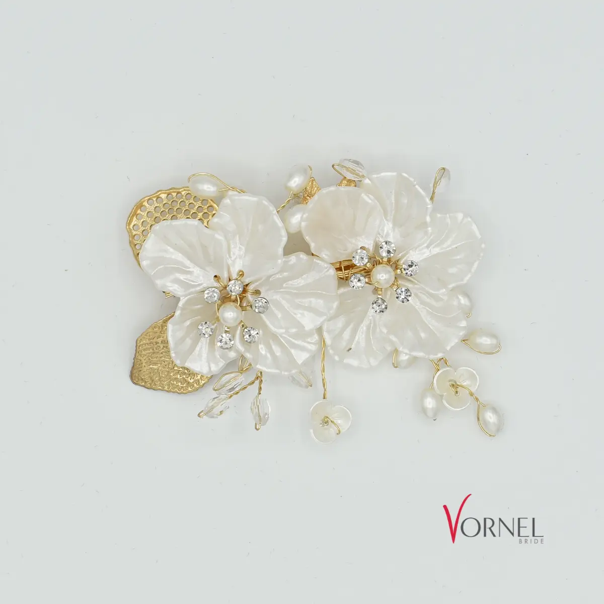 ✨ Eine romantische Haarklammer mit Blüten, Perlen und Kristallen – flexibel verarbeitet, stabil im Halt und perfekt für individuelle Brautfrisuren.